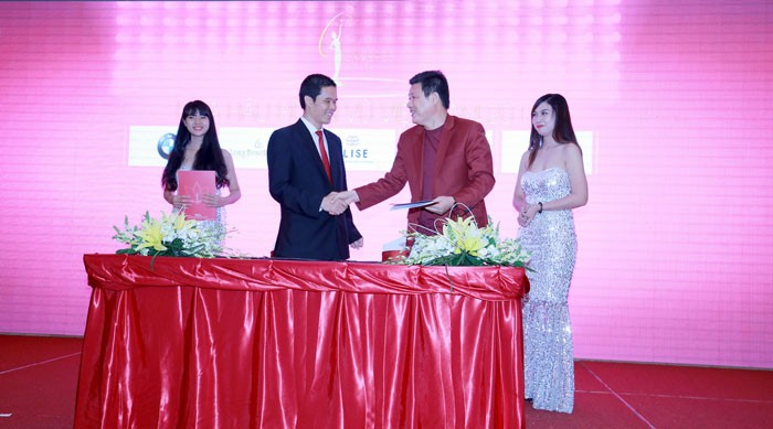 Cũng trong buổi họp báo, ông Guo Zhi Feng – Chủ tịch Hội đồng quản trị kiêm Tổng giám đốc công ty Chicilon Media đã ký kết hợp đồng tài trợ, trở thành đối tác truyền thông chính thức của cuộc thi Hoa Hậu Hoàn Vũ Việt Nam 2015.