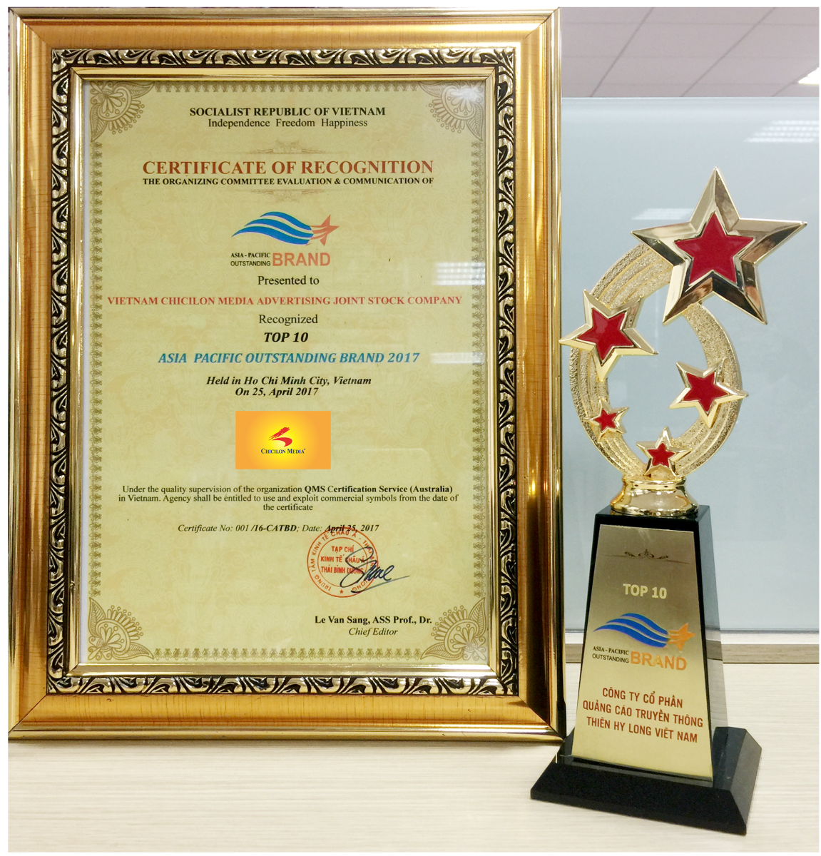 2017年5月7日于胡志明市,越南千禧龙传媒股份公司荣获由亚太经济杂志、越南品牌-VINABRA和越南商业委员会联合评选的2017年“亚太杰出品牌”奖项。越南千禧龙传媒股份公司正式创立于2006年,通过楼宇联播网和数码框架系统,千禧龙传媒一直致力于为客户提供有效的媒体营销方案。“亚太十大杰出品牌”认证正是对千禧龙传媒的不懈努力给予的肯定。