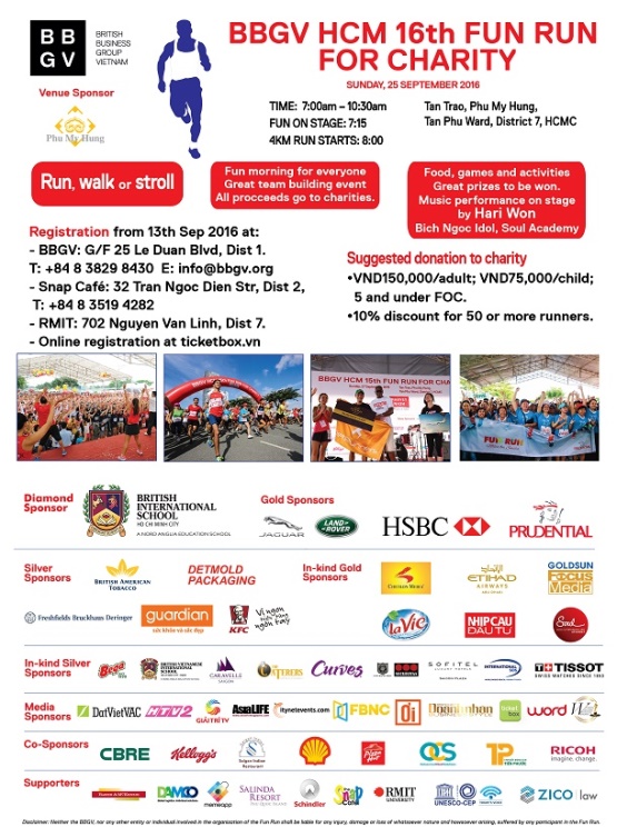 Fun Run BBGV (British Business Group Vietnam) is an annual competition to raise funds for disadvantaged people in Vietnam.